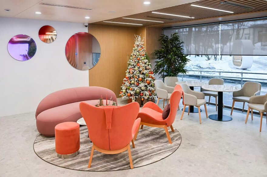 1-й этаж: приемное отделение с оборудованной экстренной операционной, отделение патологии беременности, обсервационный бокс. Здесь же располагается фойе для торжественной выписки.